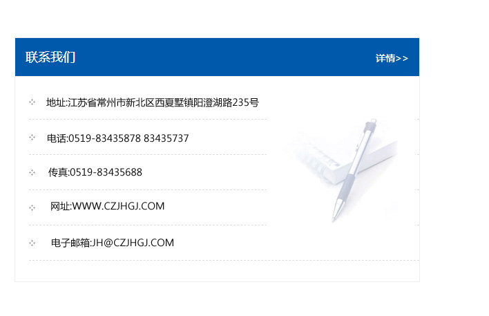 地址:常州市新北區友邦商務大廈1幢16、17層  電話:0519-85101652  傳真:0519-85112595  郵編:213022  網址:www.cz-jiayue_cn.sdheshengjixie.com  郵箱:xiajifengaa@163.com
